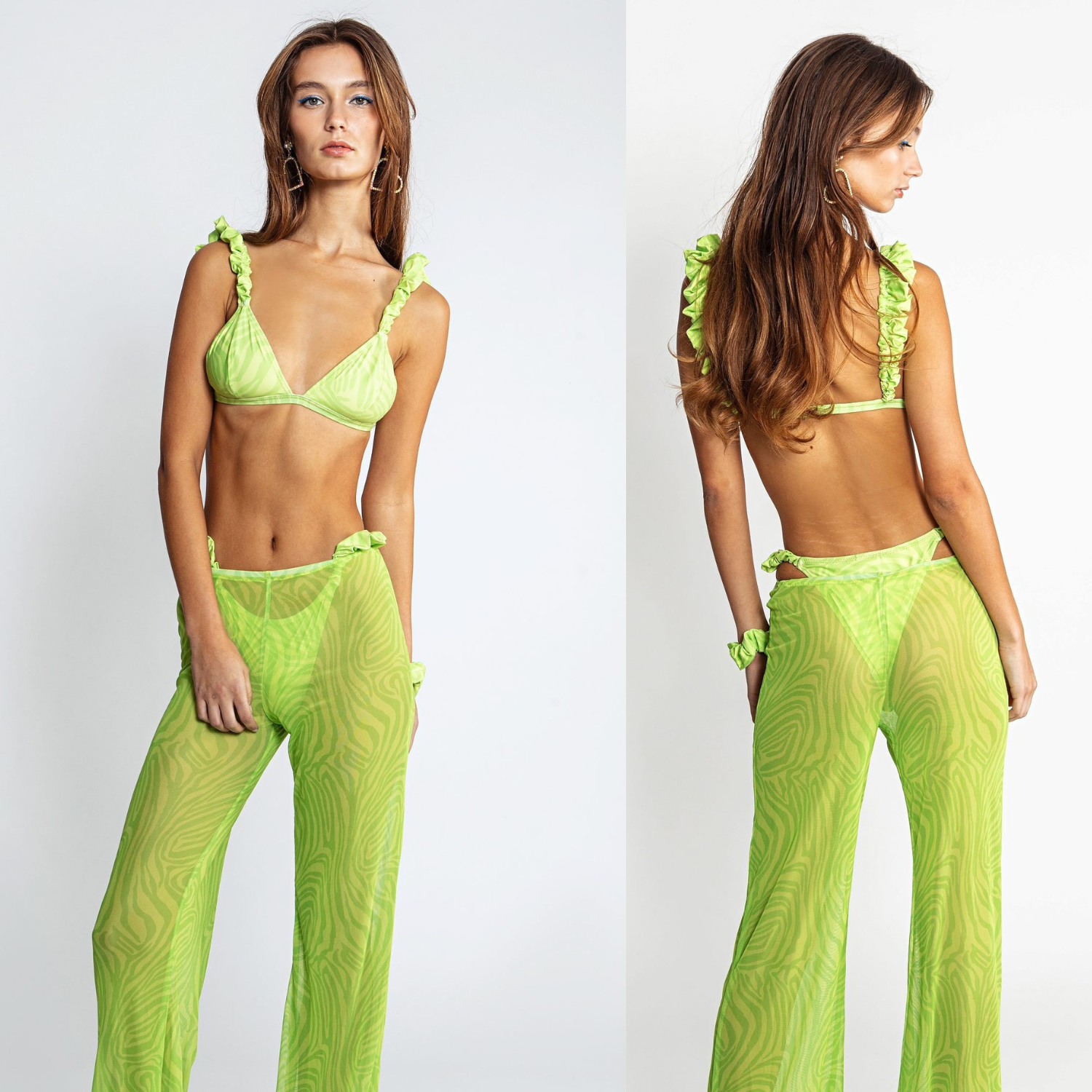 A pair of pants that has a playful lime print and is going to be your favorite beachwear this season! The Amanda Pants, with their sheer fabric and amazing fit, are the best option for a cool and stylish beach look.